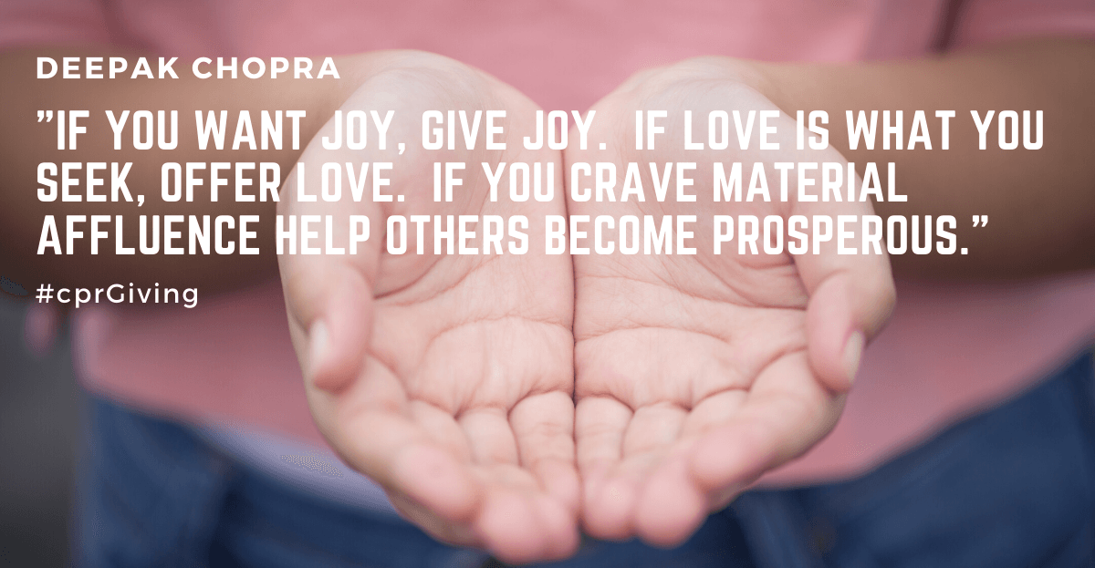 "If you want joy, give joy. If love is what you seek, offer love. If you crave material affluence help others become prosperous." Deepak Chopra